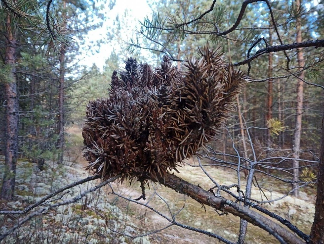 Ведьмины мётлы — это шарообразные или гнездовидные скопления ветвей в кронах деревьев. Подобные аномалии встречаются на соснах и елях в разных частях России, включая Нижегородскую область.